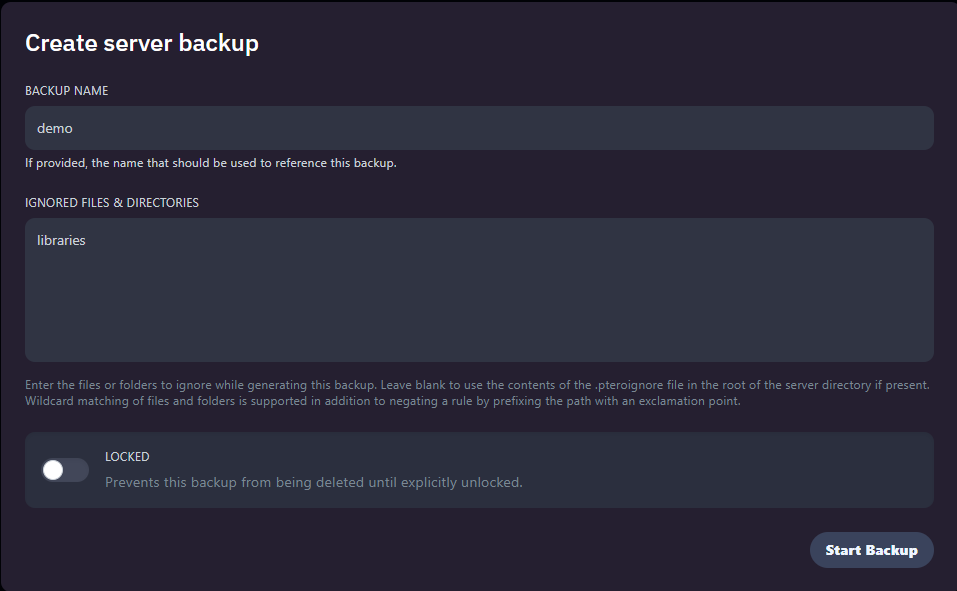 Ta đặt tên cho file backup này. Ở phần Ignored Files & Directories, nhập những file muốn bỏ qua, không lưu vào file backup. Để trống nếu muốn backup toàn bộ