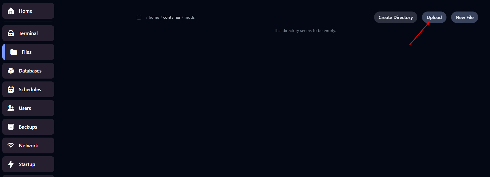 Ta chọn vào Upload để tải các file plugin lên Server Minecraft
