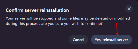 3. Tiến hành cài đặt lại server để áp dụng thay đổi#