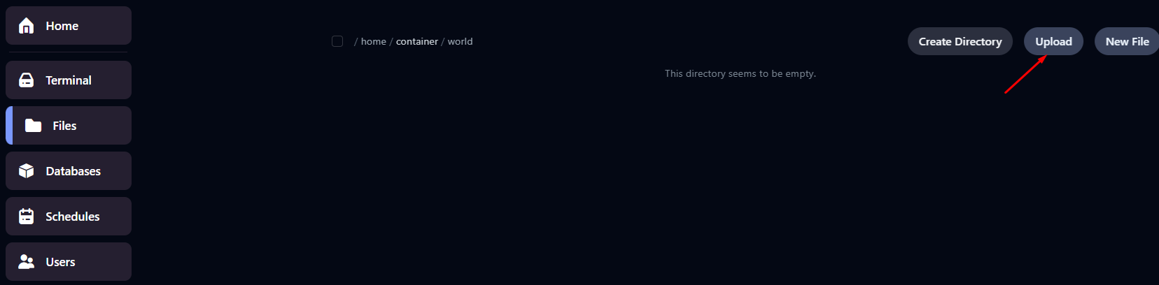 Sau khi xóa, ta nhấn vào Upload để tải world lên